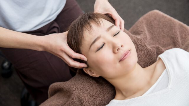 頭や首まわりの緊張をゆるめ、心身のリラックスを深めていきます。